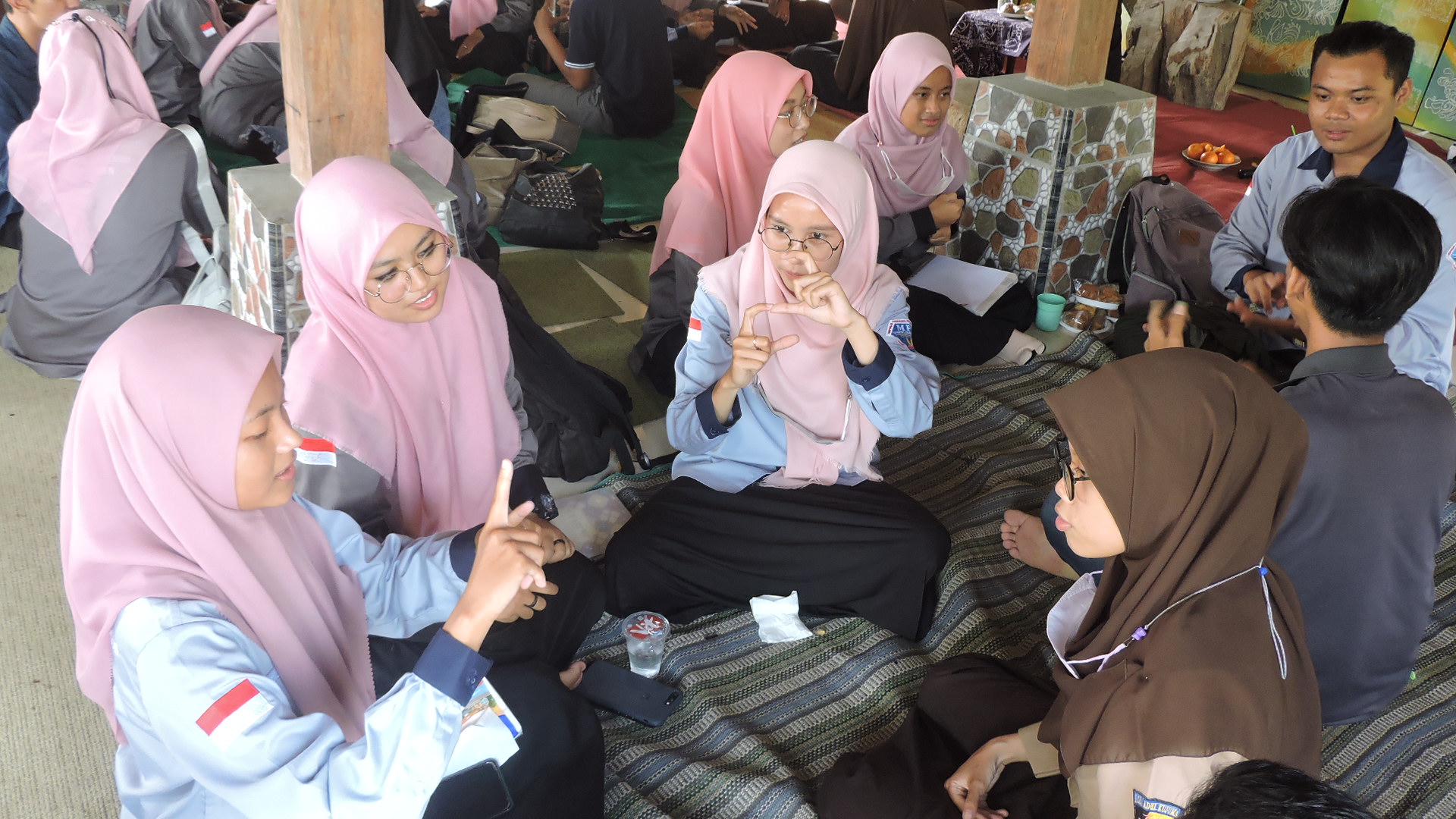 Mahasiswa antusias mengikuti kegiatan yang berlangsung menginap selama tiga hari dua malam ini. Mereka juga belajar bahasa isyarat tuli, selain metodologi riset pengabdian.